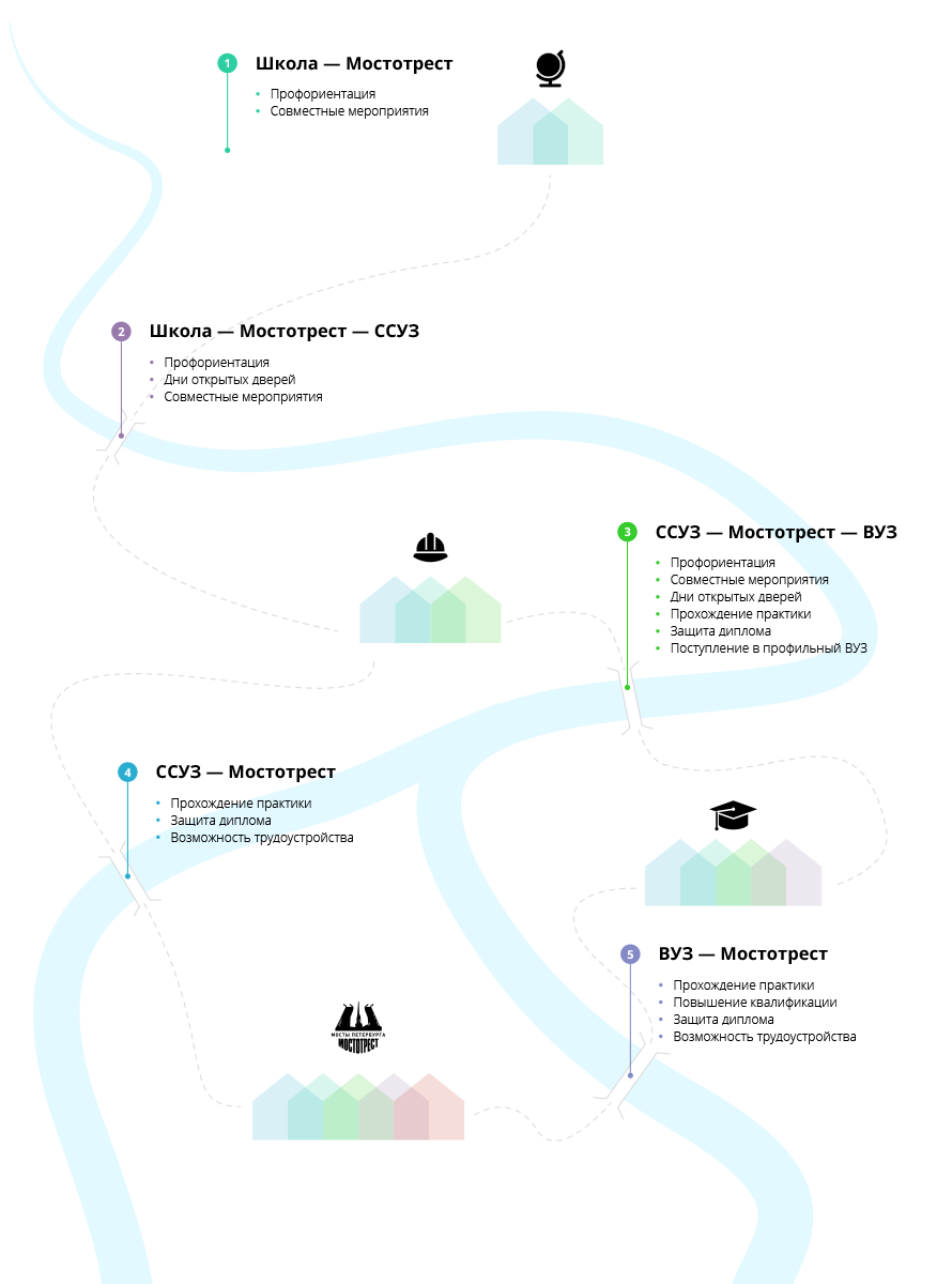 Петербургский «Мостотрест» — одна из немногих крупных организаций города, активно реализующих проект по трехстороннему соглашению со школами, ССУЗами и вузами.
